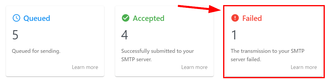 Si un message reçoit le statut « Échec », il n’a pas pu être livré au serveur SMTP que vous avez spécifié.