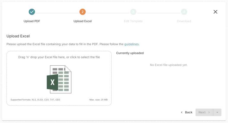 - Carregue seu arquivo PDF e crie um modelo (Passo 1 do assistente): Sua jornada começa no MailMergic. Carregue o arquivo PDF que deseja preencher automaticamente. Pode ser uma fatura, um certificado, um contrato ou qualquer outro documento. Uma vez carregado, o MailMergic automaticamente o reconhece como um novo modelo, pronto para personalização. ⬆️