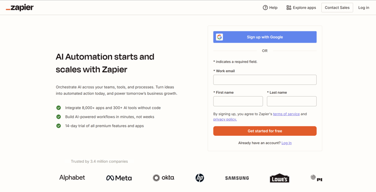 - Crie sua conta Zapier: Se você ainda não tem uma, inscreva-se para uma conta Zapier. Esta plataforma servirá como a ponte conectando sua planilha do Google ao MailMergic, e depois a outros aplicativos. 🔗